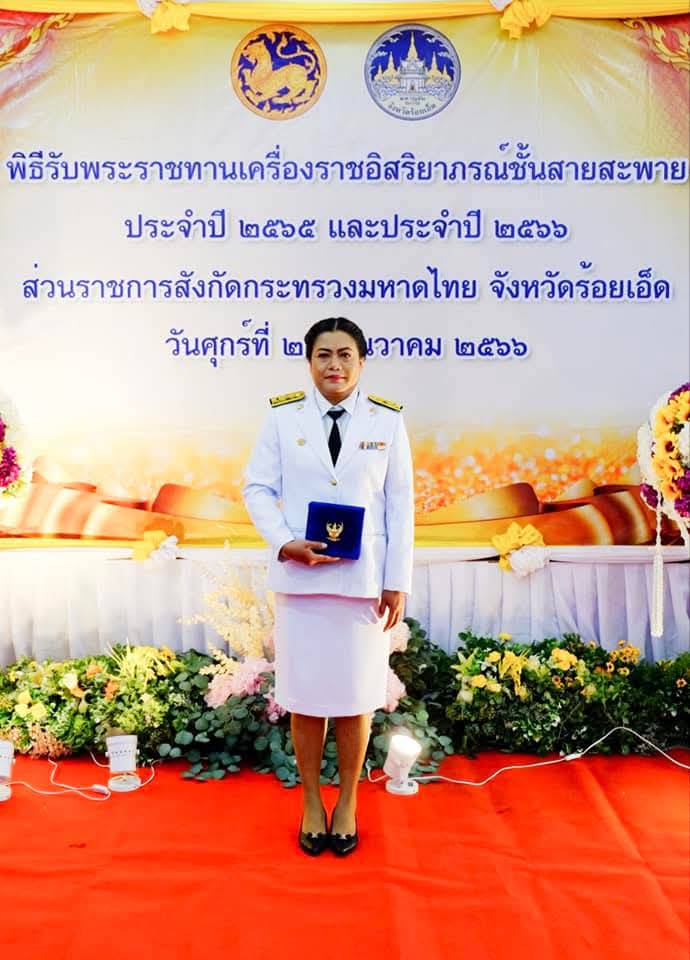 ชื่อผลงาน : รับพระราชทานเครื่องราชอิสริยาภรณ์ชั้นสายสะพาย ชื่ออาจารย์ : นางราตรี คำมูลนา ตำแหน่ง : ครู วิทยฐานะครูเชี่ยวชาญ |