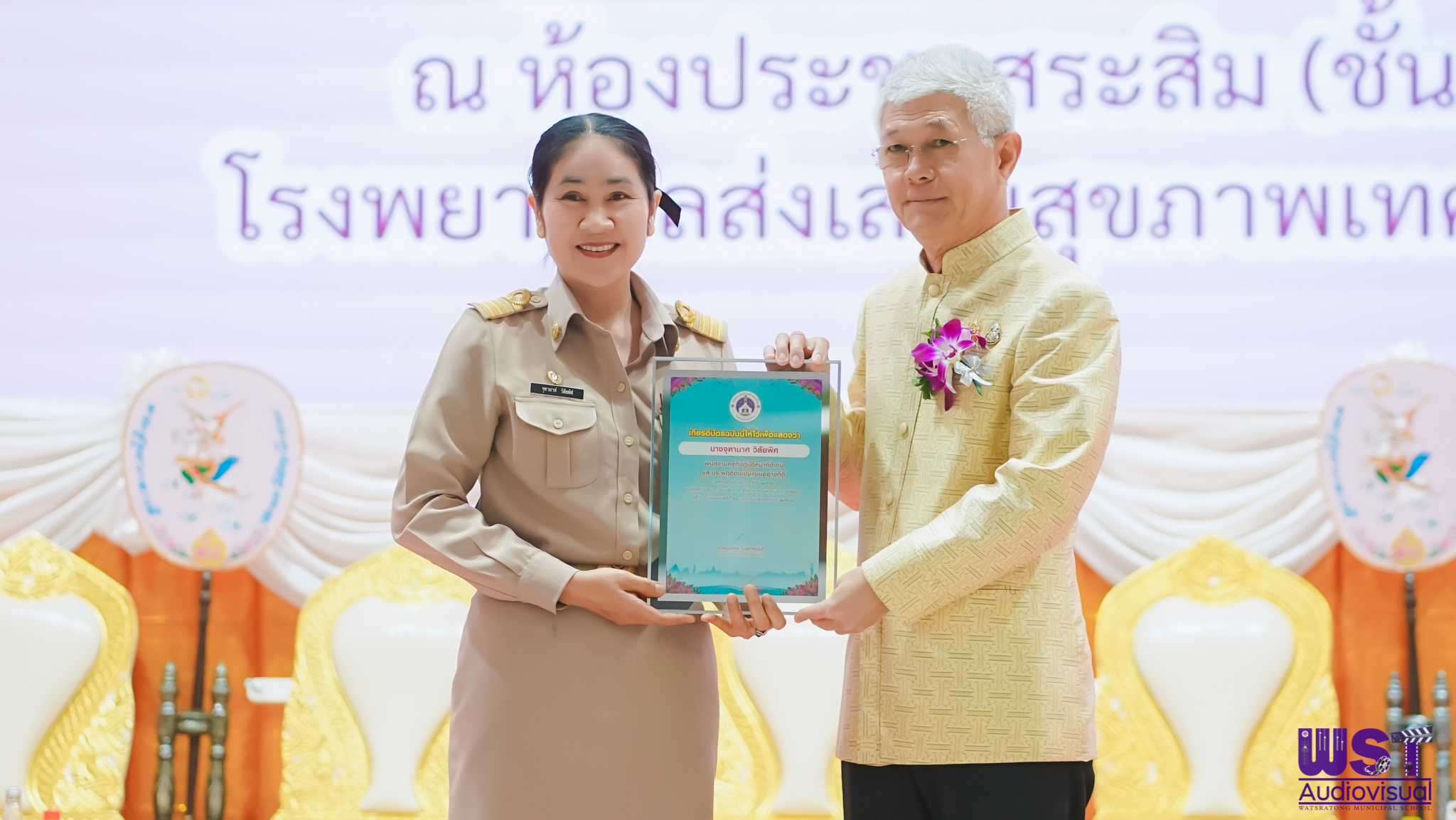 ชื่อผลงาน : รางวัลผู้บริหารสถานศึกษาที่ปฎิบัติหน้าที่ดีเด่น และประพฤติตนเป็นแบบอย่างที่ดี เนื่องในวันครู 2568 เทศบาลเมืองร้อยเอ็ด ชื่ออาจารย์ : นางสาวสมพิศ หวังทรัพย์ทวี ตำแหน่ง : ผู้บริหารสถานศึกษา |